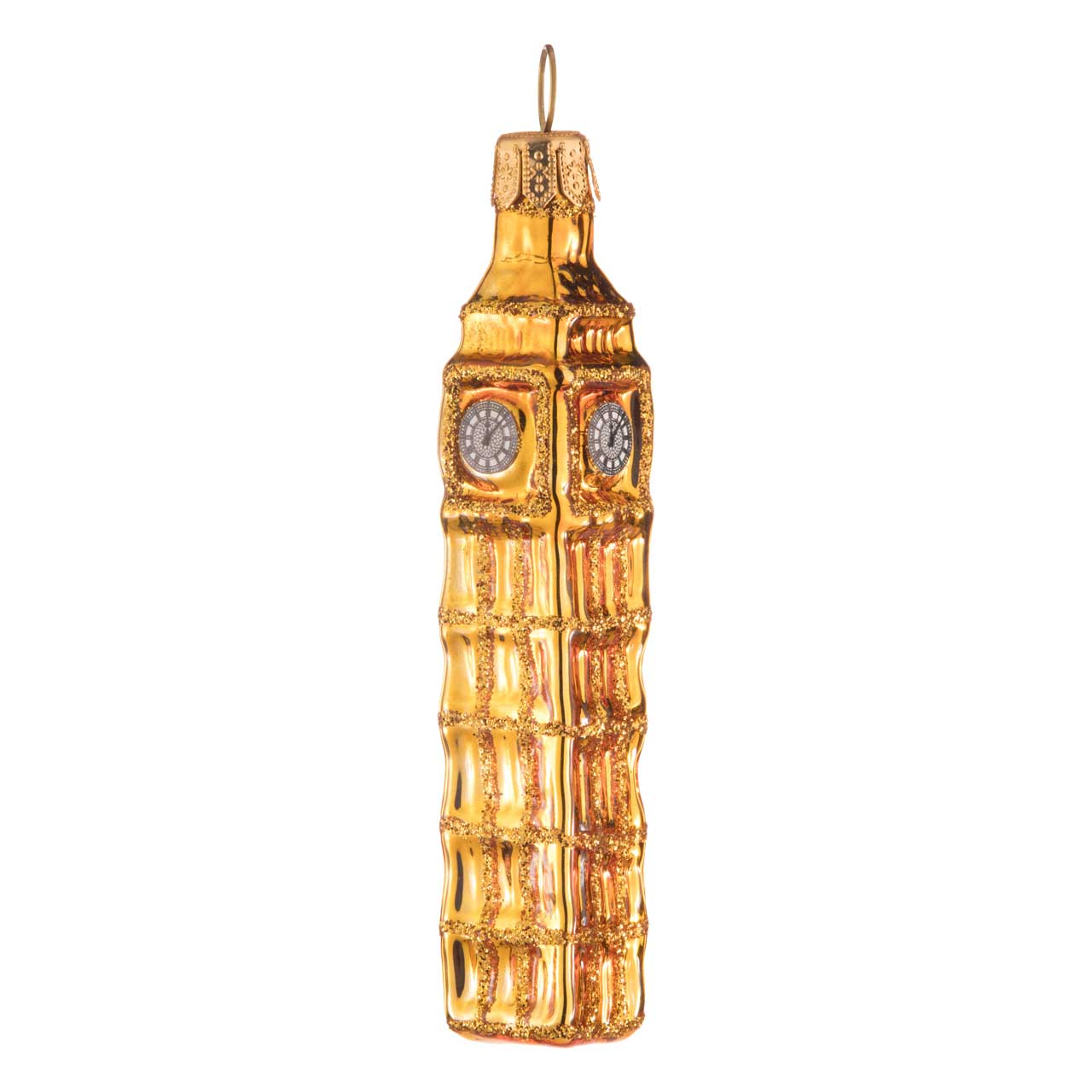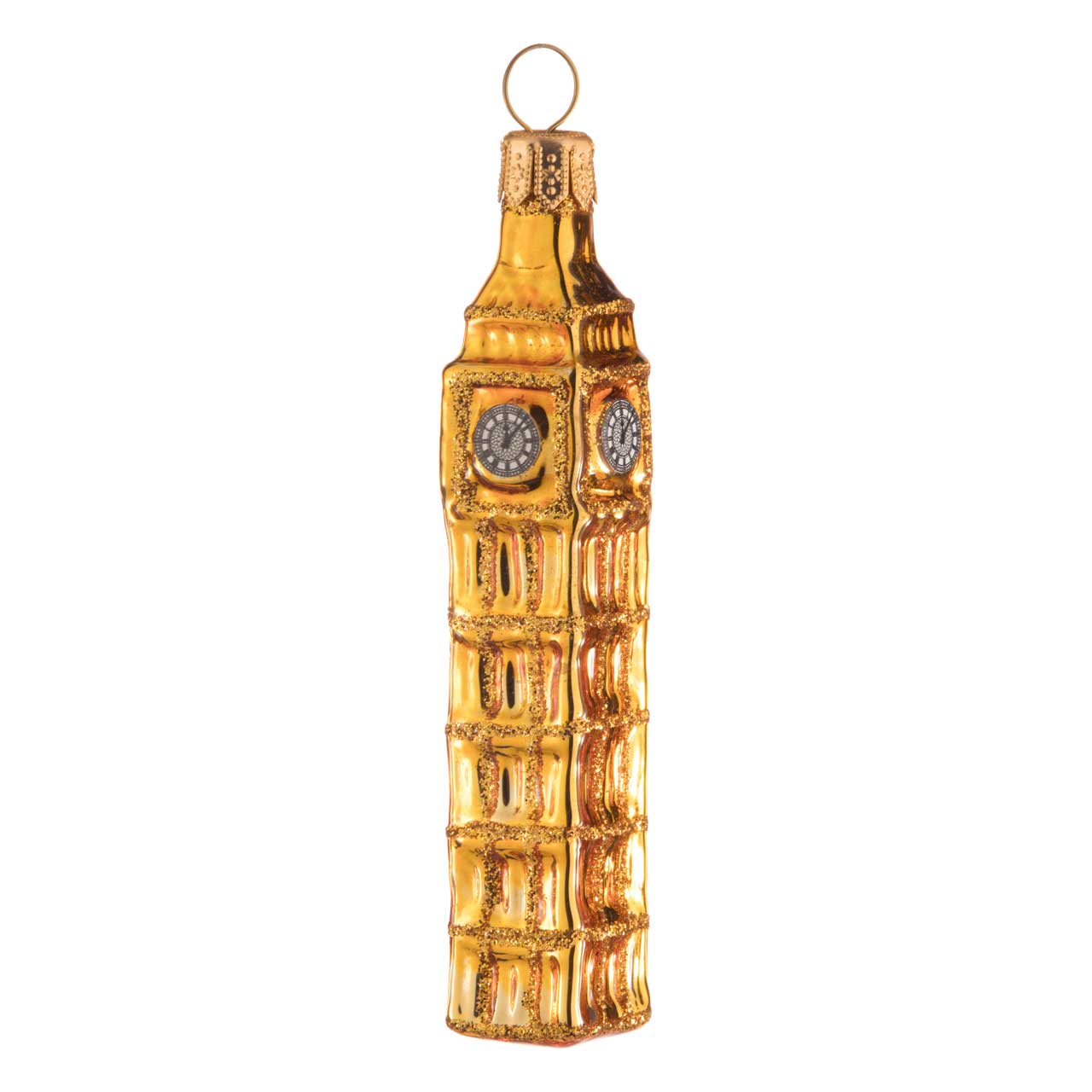 Clock Tower hieß er lange Zeit. 2012, beim diamantenen Thronjubiläum der Queen, erhielt er dann den offiziellen Namen "Elizabeth Tower". Gold glänzend, mit der berühmten Uhr, die schon in zahlreichen Filmen eine große Rolle spielen durfte, präsentiert er sich hier nun als Christbaumfigur. Für London-, Royal- oder England-Fans. Einfach für alle, die sich an Weihnachten über das Wahrzeichen im Baum freuen.