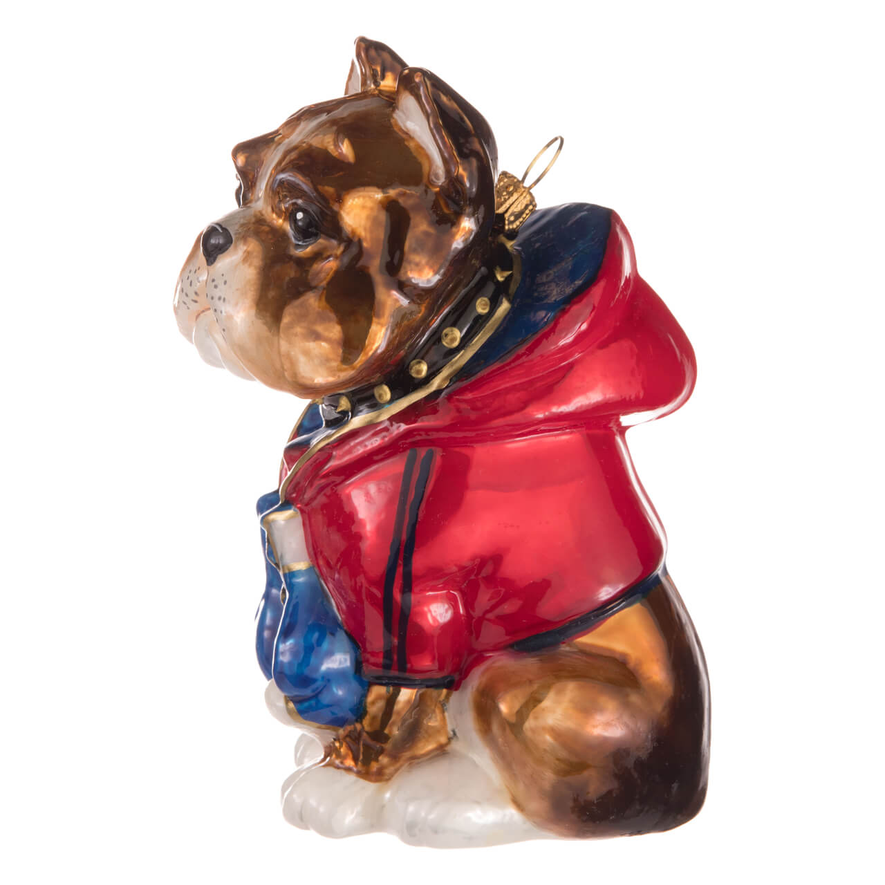 "Schau mal, ein Boxer!" Was gemeinhin wohl als so genanntes Teekesselchen verstanden wird und erst im richtigen Zusammenhang seine wahre Bedeutung entpuppt, kehrt sich bei dieser herrlichen Figur ins absolute Gegenteil. Hund oder Kämpfer? "Na, beides!", lautet hier die richtige Antwort, denn das gläserne Schmuckstück für den Tannenbaum ist alles zugleich: ein boxender Boxer! Und zwar ein besonders hübscher, der nicht nur Fans der liebenswerten Hunderasse in Verzückung bringt.