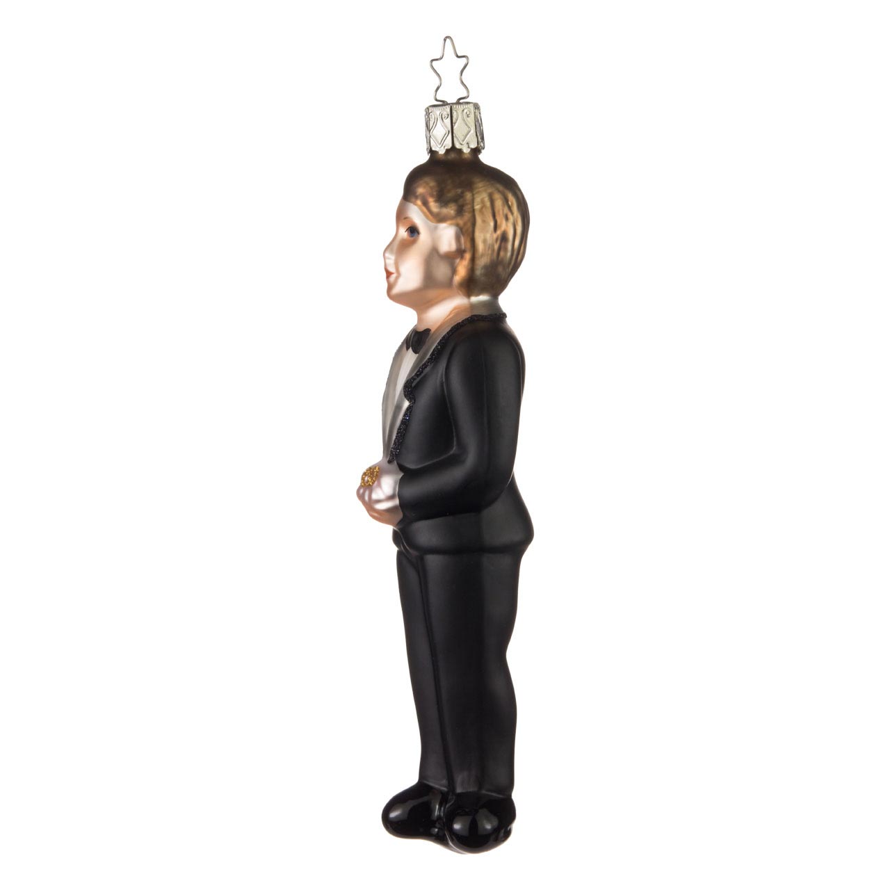 Erwartungsfroh bereit für den schönsten Tag des Lebens! Mit hingerissenem Blick und glückseliger Miene hängt beziehungsweise steht er da: der Bräutigam für den Tannenbaum. Eine Figur, die Jahr für Jahr an das markante, wunderbare Ereignis, das ganz persönliche Fest der Liebe, erinnert.