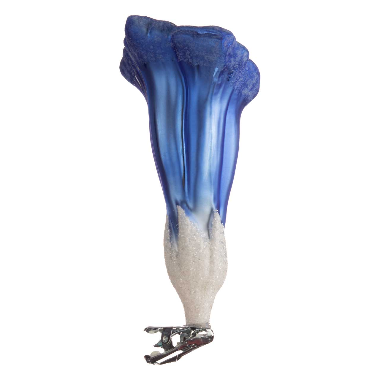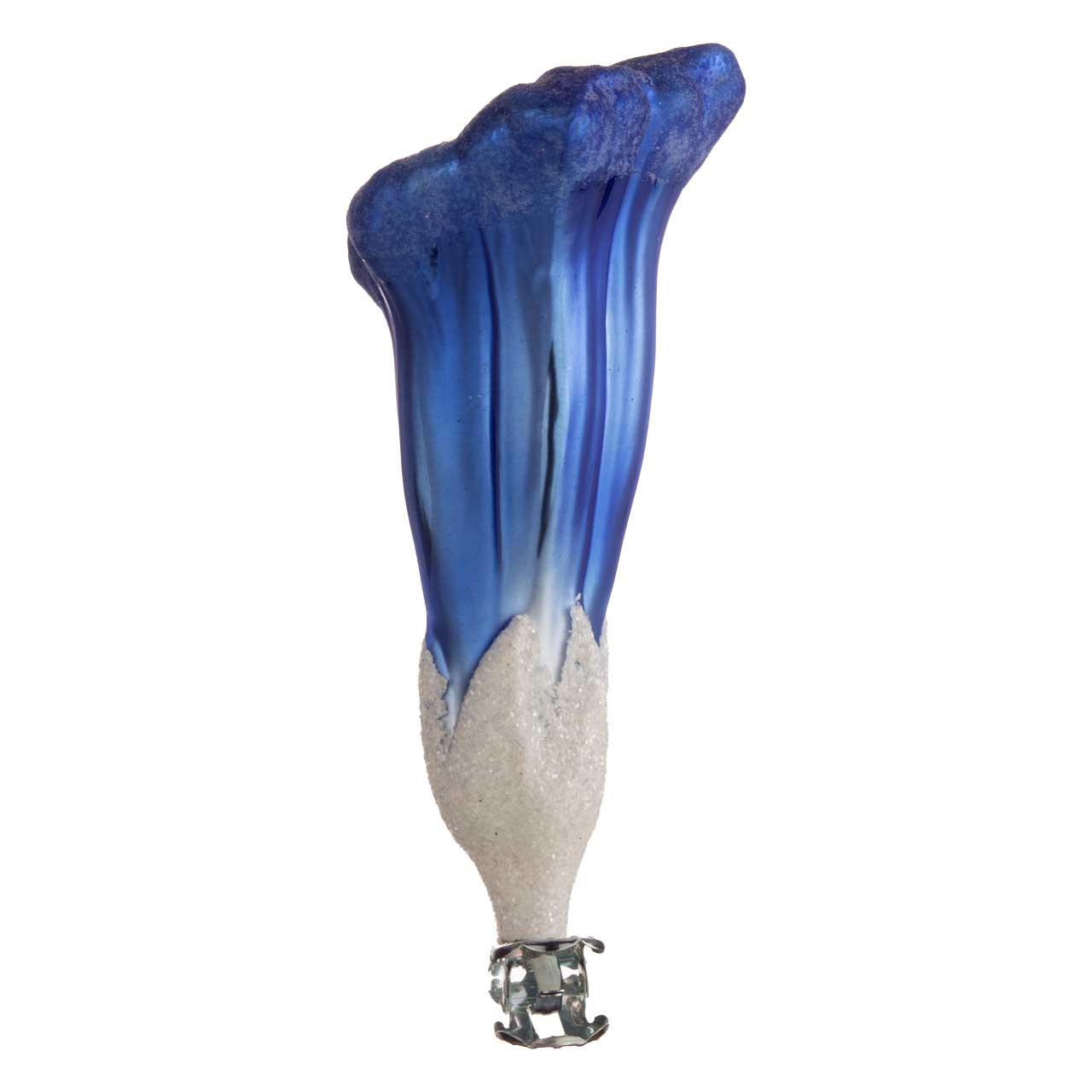 Diese Darstellung zeigt eine stilisierte Enzianblüte in kräftigem Blau, deren Blütenkelch sanft nach außen aufgeht. Der Stiel ist in funkelndem Weiß gehalten, überzogen mit feinem Glimmer, der an frischen Schnee erinnert. Eine elegante, naturnahe Form in harmonischem Farbverlauf von Schneeweiß zu Alpenblau – schlicht, edel und voller natürlicher Anmut.