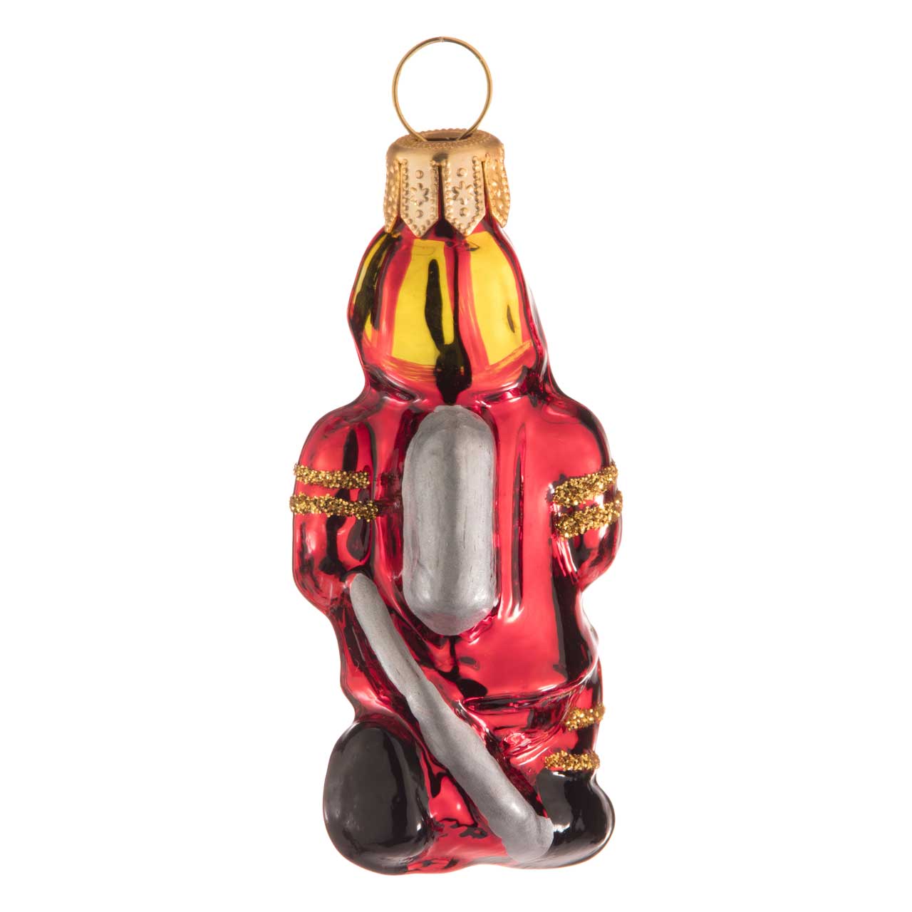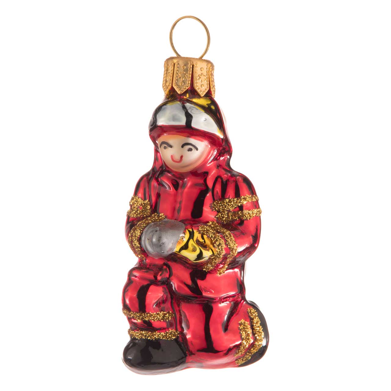 Christbaumkugel: Feuerwehrmann mit Strahlrohr (rot)