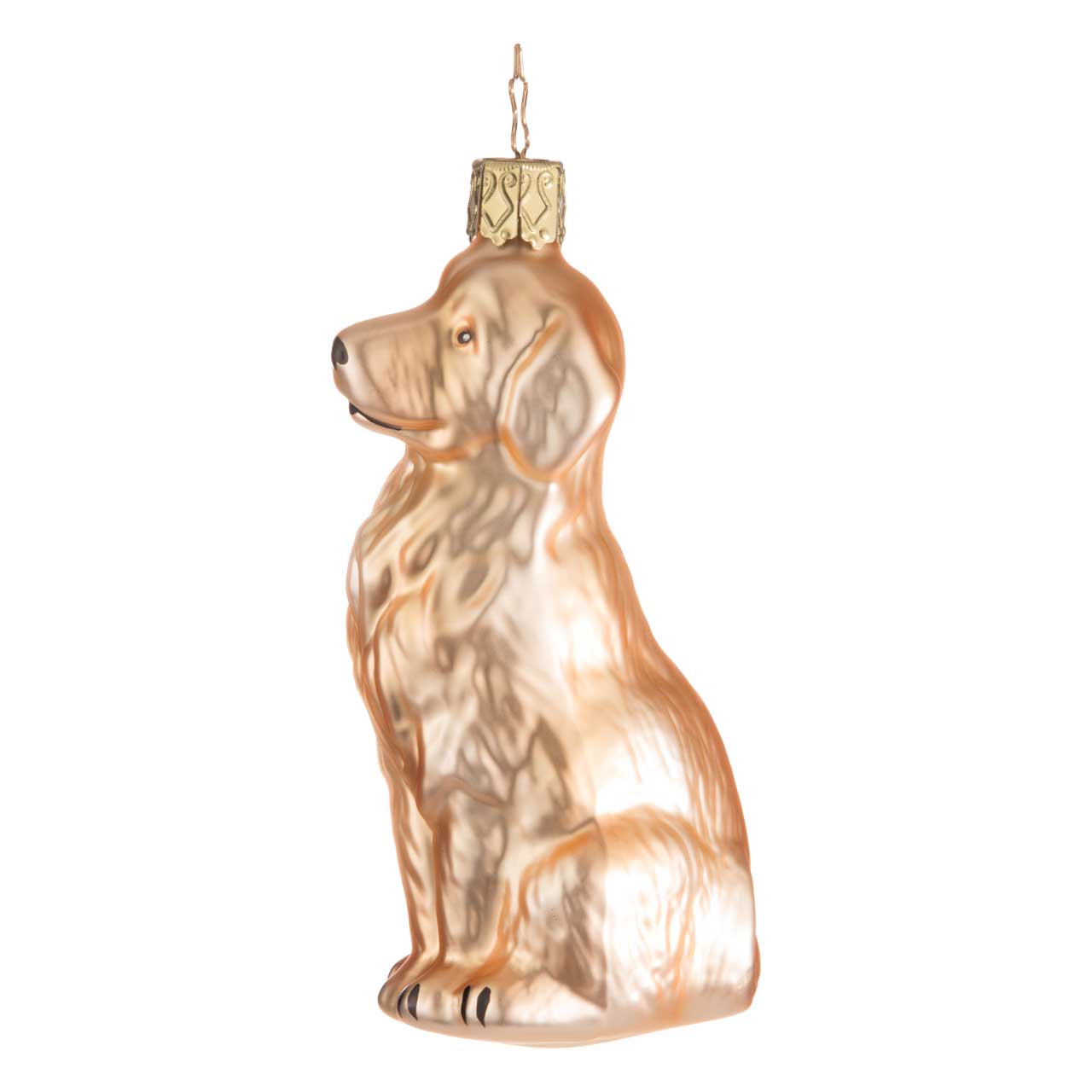 Er gilt als leicht zu führender Familienhund, der sich gern im Rudel unterordnet und mit Spaß und Eifer immer gerne mit von der Partie ist. Aus Glas geblasen und dezent lackiert fügt er sich auch wunderbar in den Schmuck Ihres Tannenbaums ein. Von wem die Rede ist? Vom Golden Retriever natürlich.