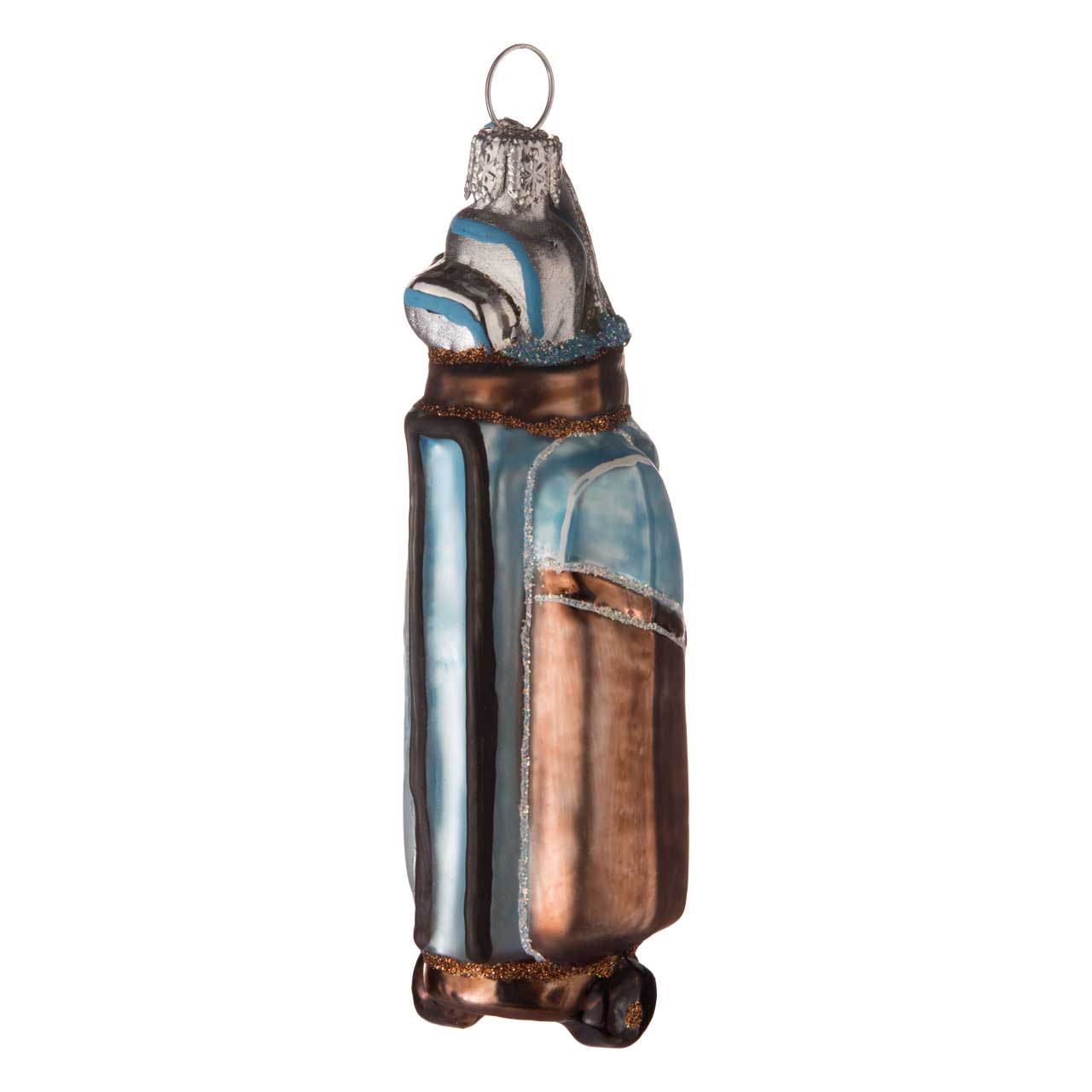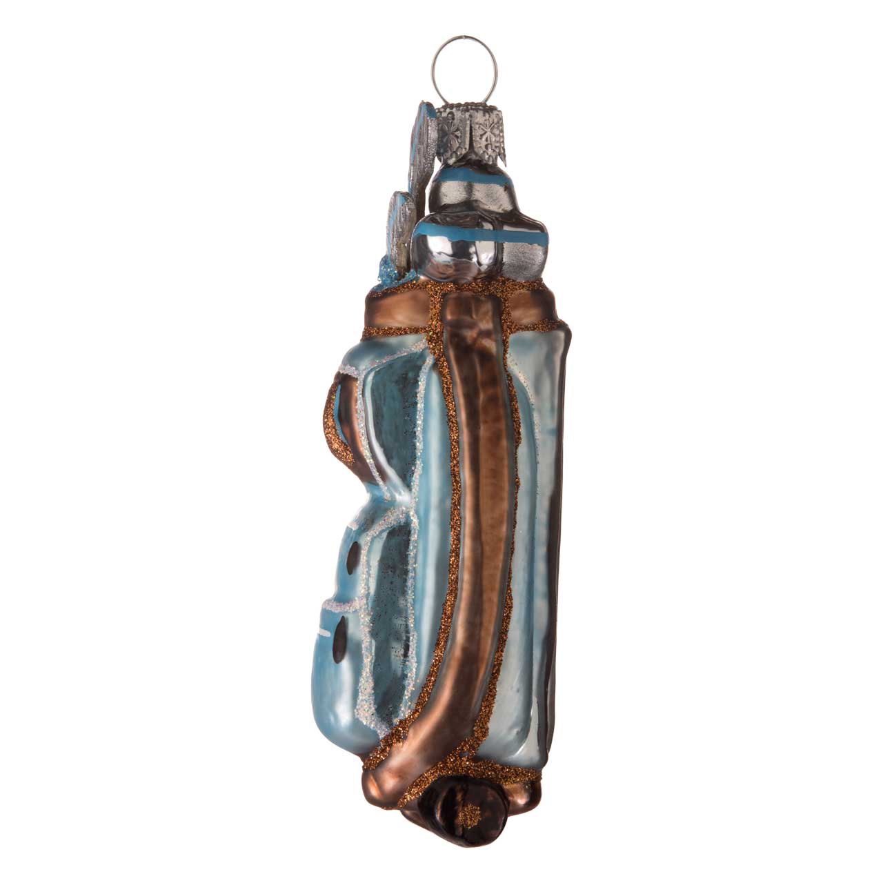 So wie diese Golftasche für den Weihnachtsbaum. Alles hat sie dabei, um einen gepflegten Gang über das weitläufige Grün zu begleiten: zwei dunkelbraune Rollen sowie eine schwarze Teleskopstange zum Ausziehen und komfortablen Hinterherziehen. Im Hauptfach haben fünf unterschiedliche, silbern lackierte Schläger Platz gefunden. Viele, aufgesetzte Taschen schenken weiterem Equipment Raum. Und die Farbe? Die kann sich ebenso sehen lassen: Ein lederner Braunton wird hier zu einem hellen Blau kombiniert. Jeweils in edler, matt schimmernder Farbausführung kommt die Golftasche daher, deren Nähte und Paspeln zudem mit silbernen Glitzerkonturen verziert wurden.