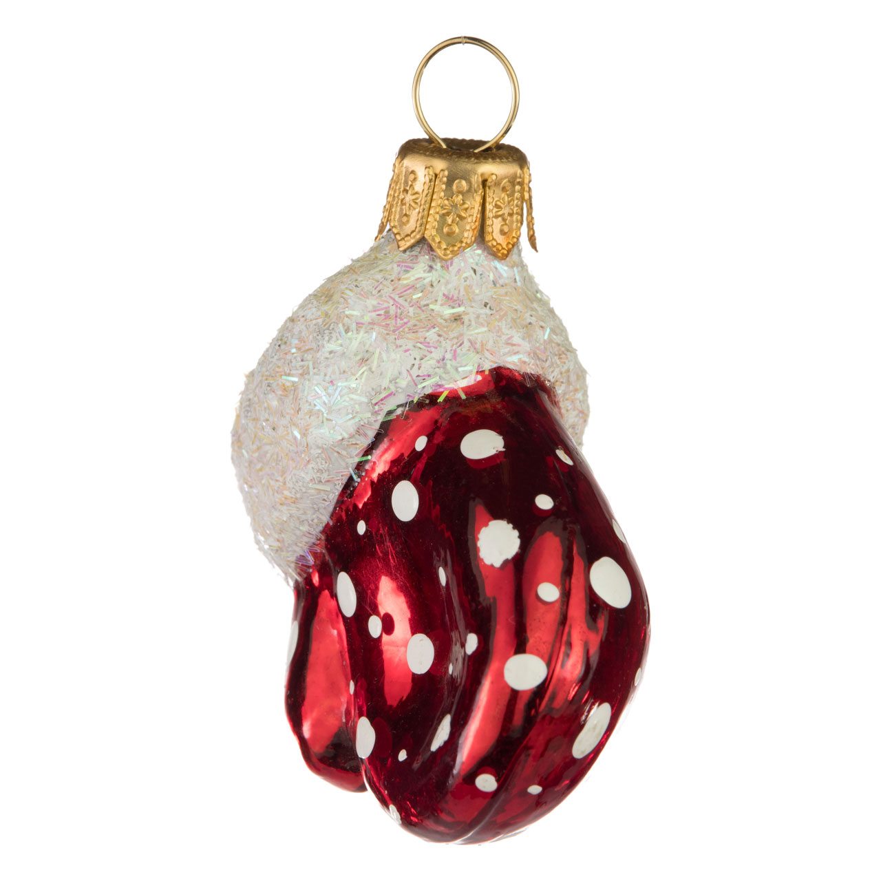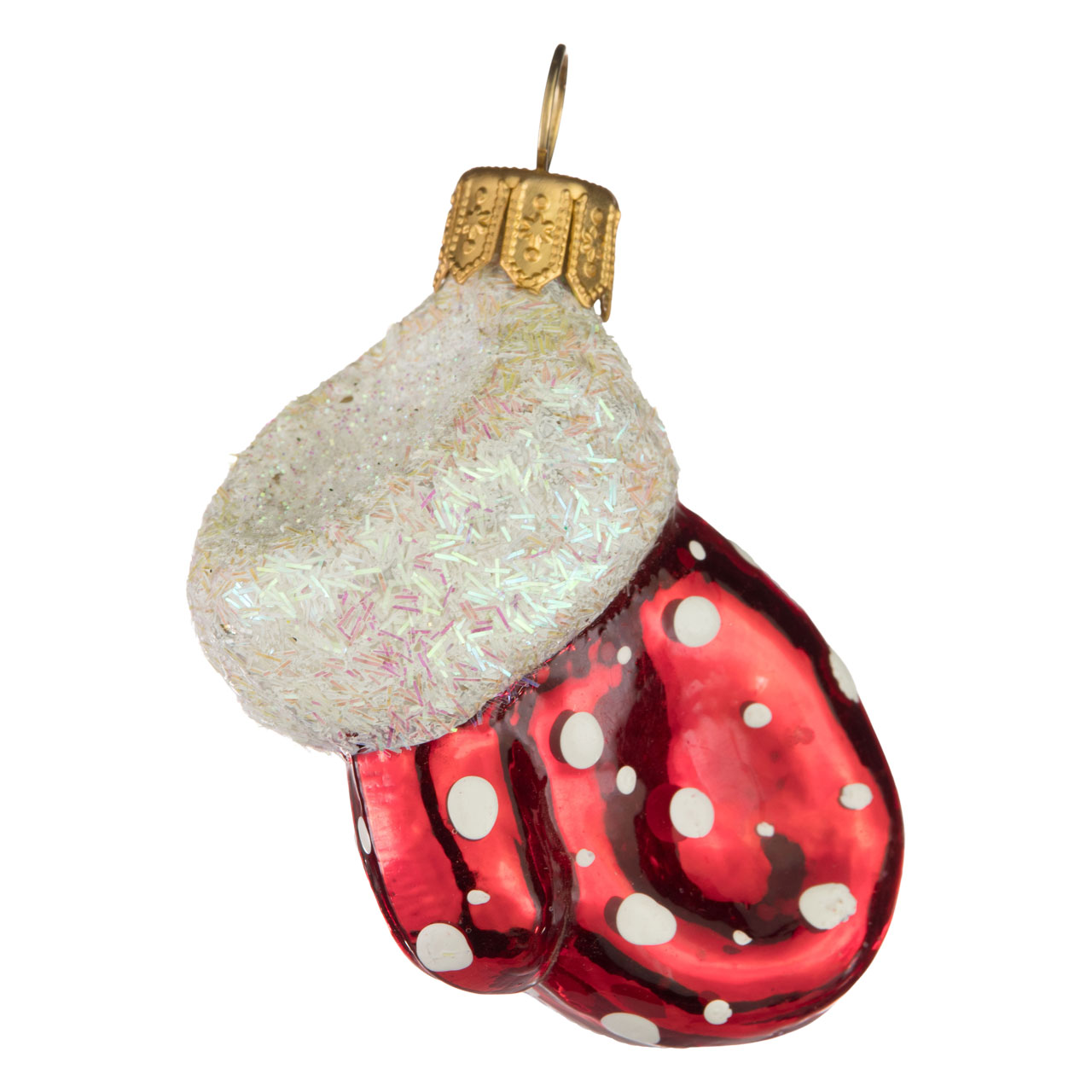 Nahezu perfekt sieht er nämlich aus in seiner das Herz wärmenden Komposition. Mit einer Größe von nur fünf Zentimetern ist er knuddelig kompakt. Der rote, glänzende Lack macht ihn dennoch zum Blickfang im dunkelgrünen Tannengrün des Christbaums. Ein handgemaltes Eiskristall sowie unterschiedlich dicke, weiße Punkte und Tupfen auf Vorder- und Rückseite sorgen für winterliches Flair. Durchsichtige, lange Glitzerelemente an der dicken, weißen Krempe versprechen ein zuverlässiges, wärmendes Futter.