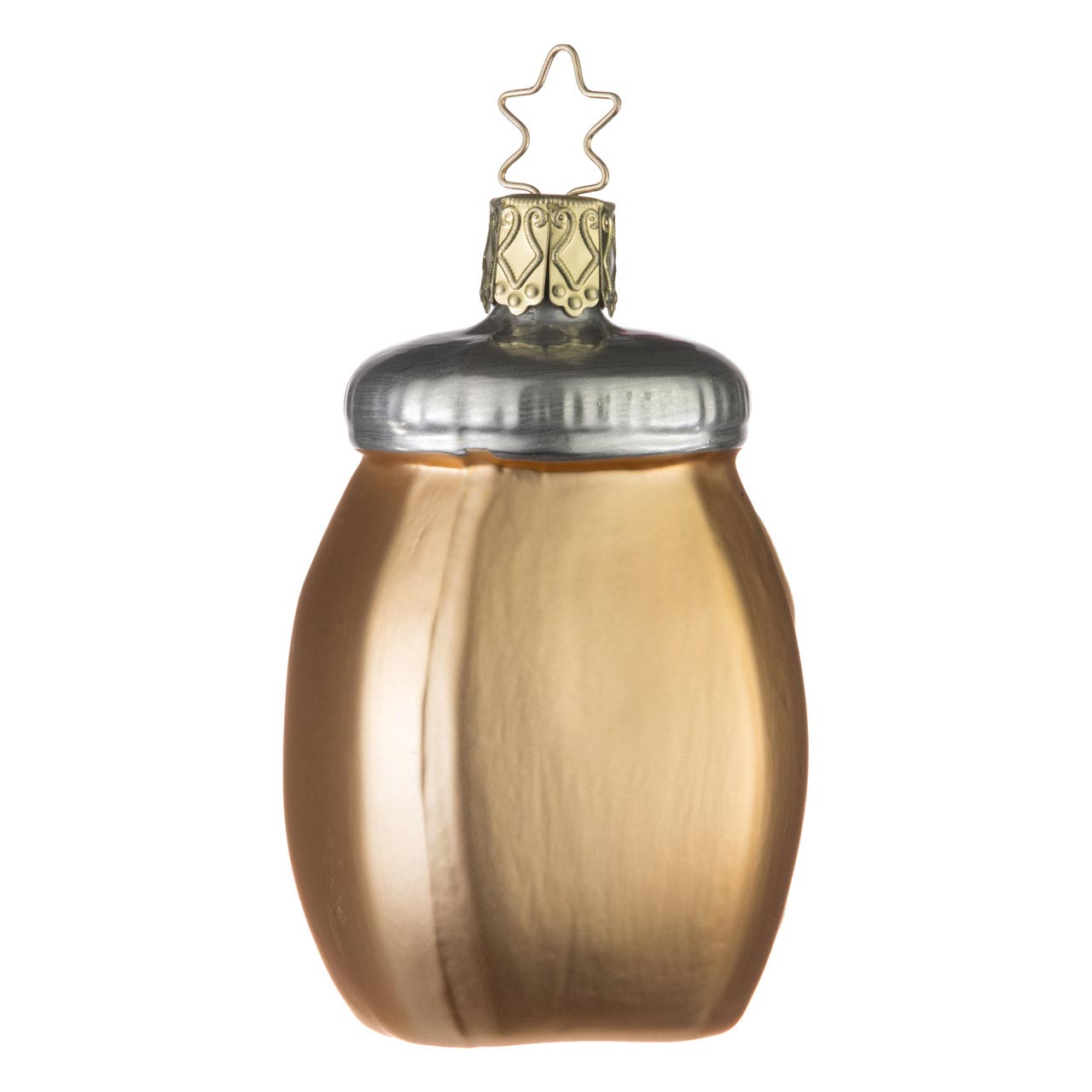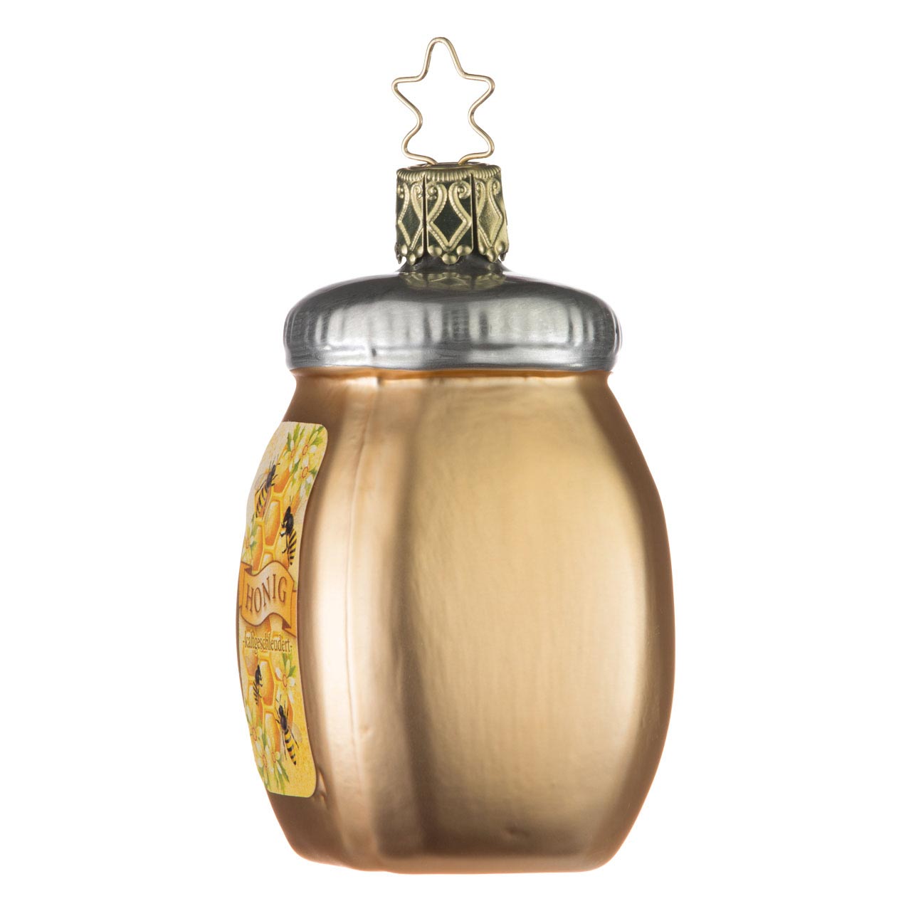 Wie süß: Ein kleines Gläschen für den Baum? Mit der liebsten Frühstücksspeise? Aber gerne! Vor allem, wenn das edle Gefäß so elegant daherkommt wie dieses Honigglas. In edlem Mattgold schimmert die bauchige, leicht längliche Form. Ein silbriger, geriffelter Deckel markiert die Oberseite.