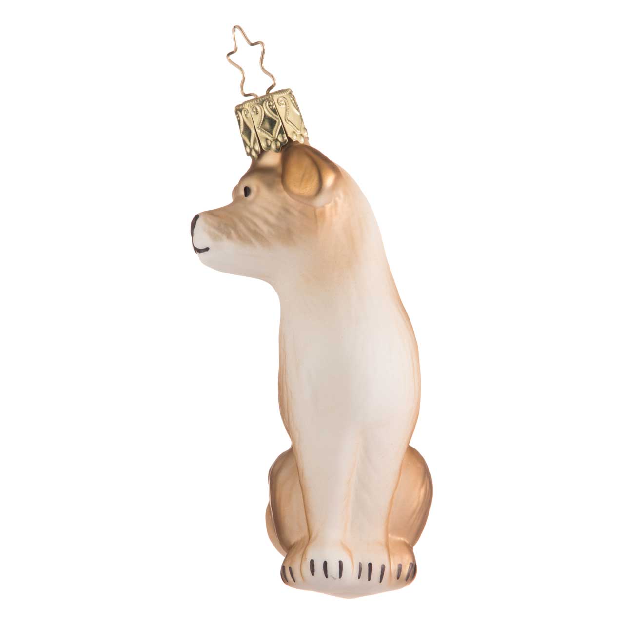 Er ist sehr stilisiert mit seinem matt schimmernden Fell mit fast seidigem Farbverlauf von Weiß nach Beige, ganz zart und pastellig. Und dennoch lässt sich der Jack Russell Terrier eindeutig erkennen. Ob es an den markanten, geknickten Ohren liegt oder am freundlich-aufmerksamen Blick, mit dem der kleine Glaskerl dem Betrachter so munter entgegenschaut?