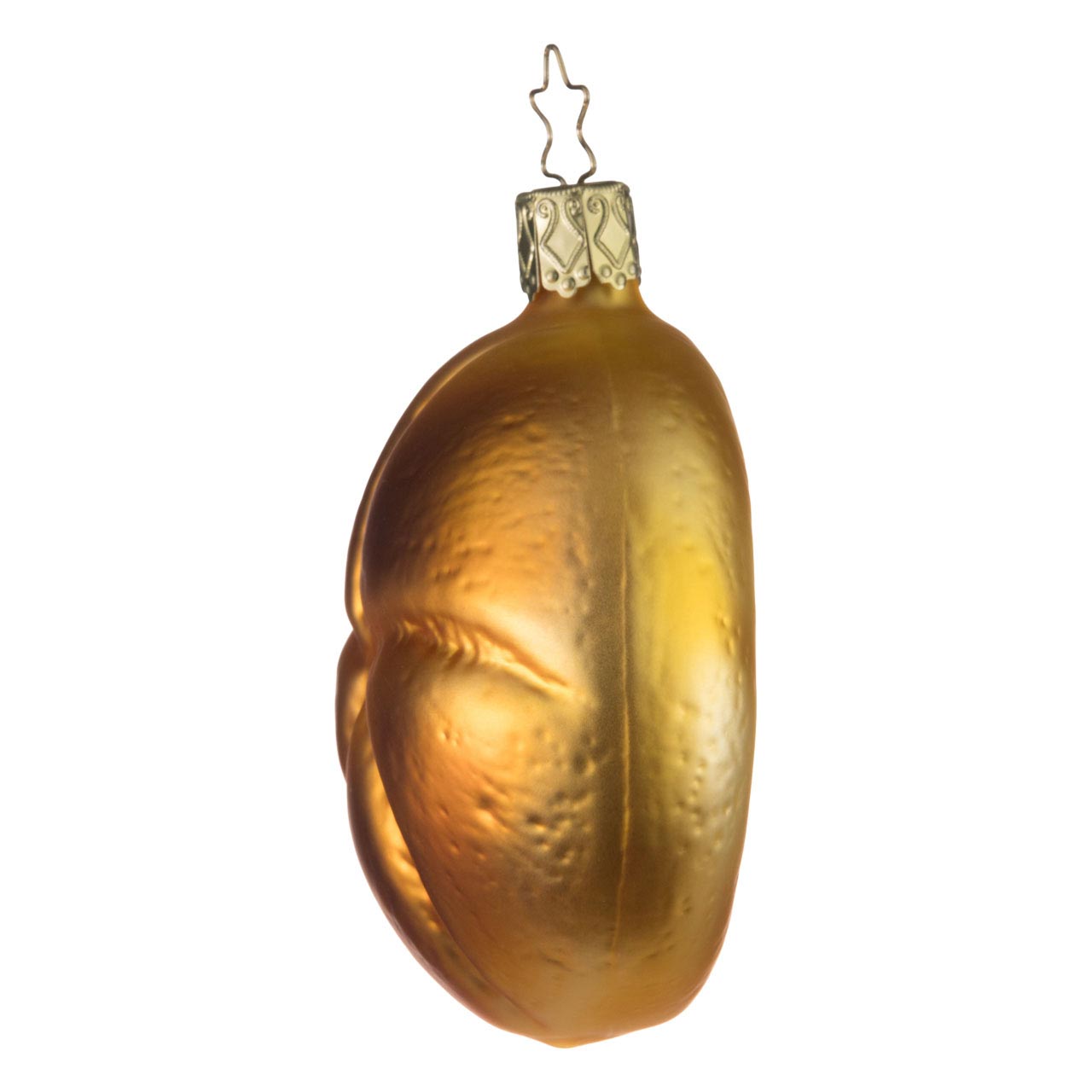 Goldbraun schimmert sie, mal heller, mal dunkler, wie frisch gebacken. Knusprig. Die Unterseite glatt, auf der oberen - ein sanft geschwungener, fünfarmiger Stern. Eindeutig: Hier baumelt eine Kaisersemmel vom Krönchen.