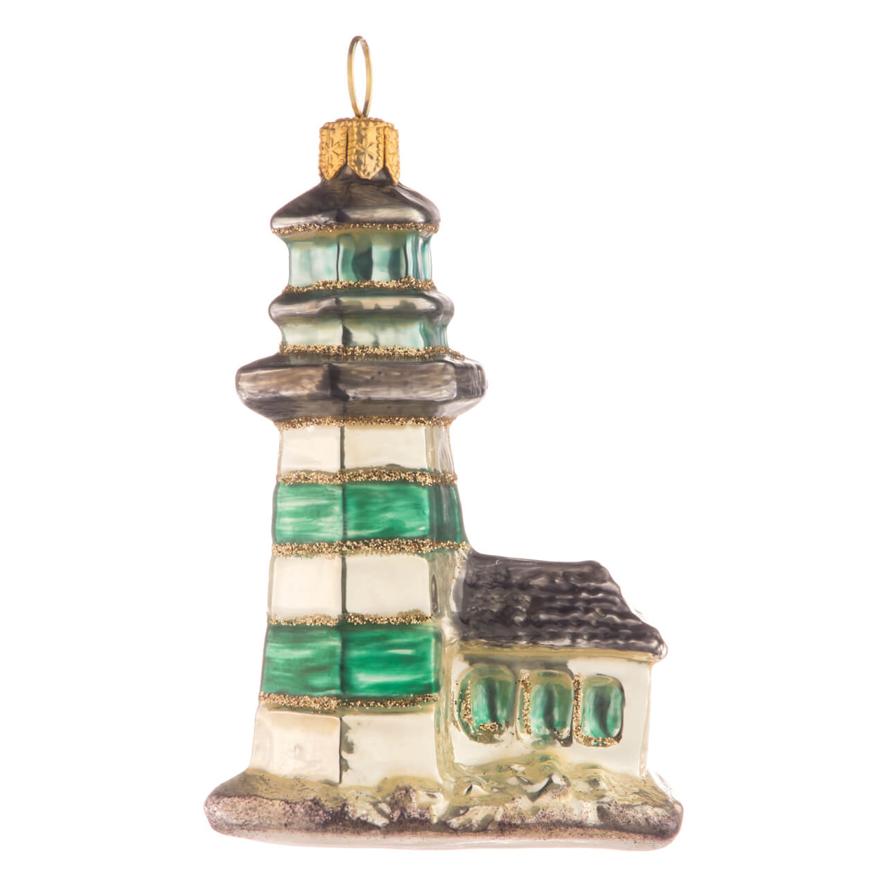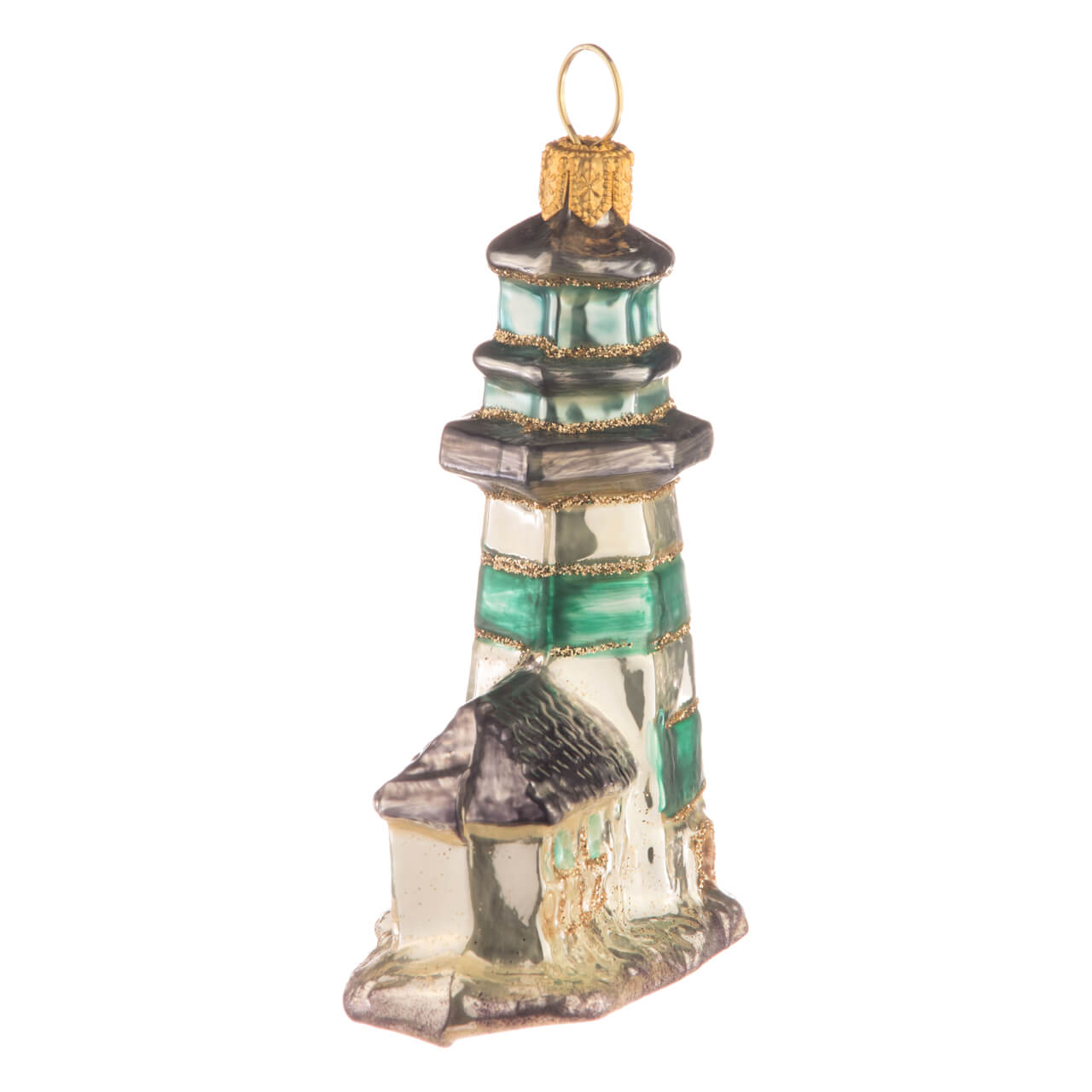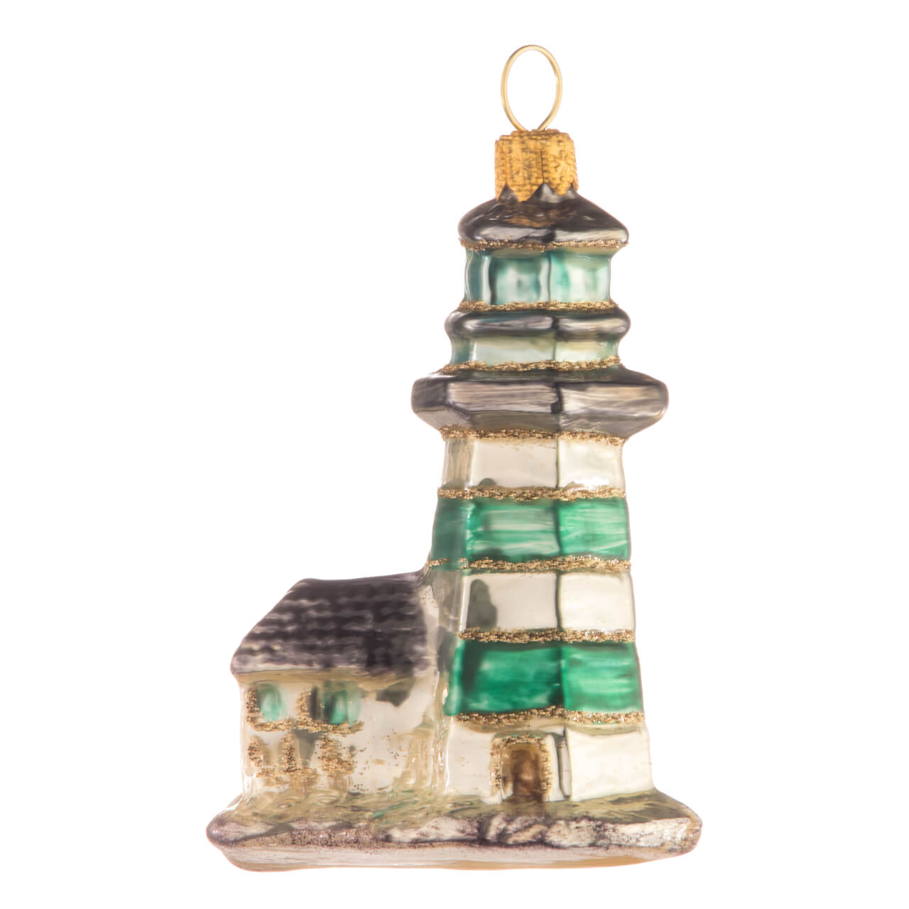 Christbaumkugel: Kleiner Leuchtturm (blaugrün / silber)