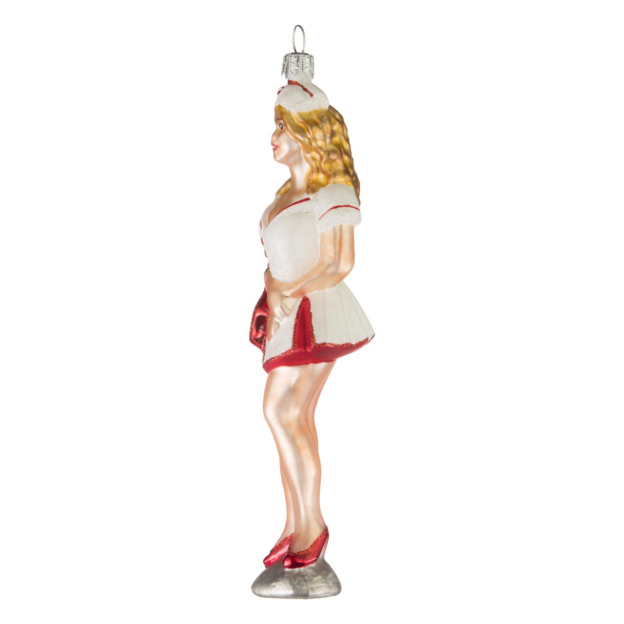 Ohne sie bräche unser Gesundheitssystem zusammen: Ein Hoch auf die Krankenschwester, die immer da ist, hilft, versorgt, ob Tag, ob Nacht, zu jeder Zeit. Besonders hübsch mit blonden, wallenden Locken, langen, schlanken Beinen und einem Dress, der weniger in der Klinik als beim Rosenmontagsumzug zum Tragen käme, setzt diese kunstvolle Christbaumfigur dem Berufsstand nun ein filigranes Denkmal.