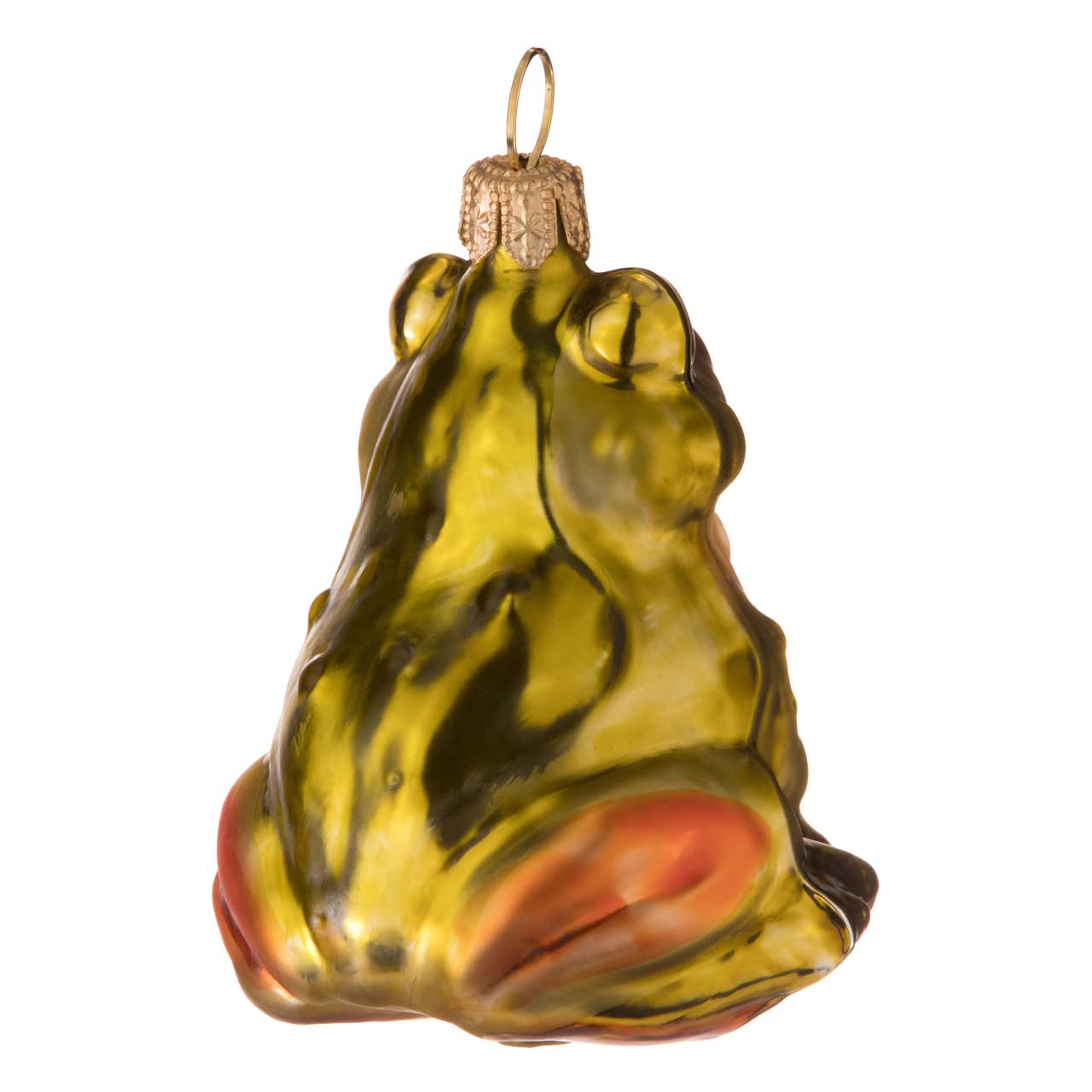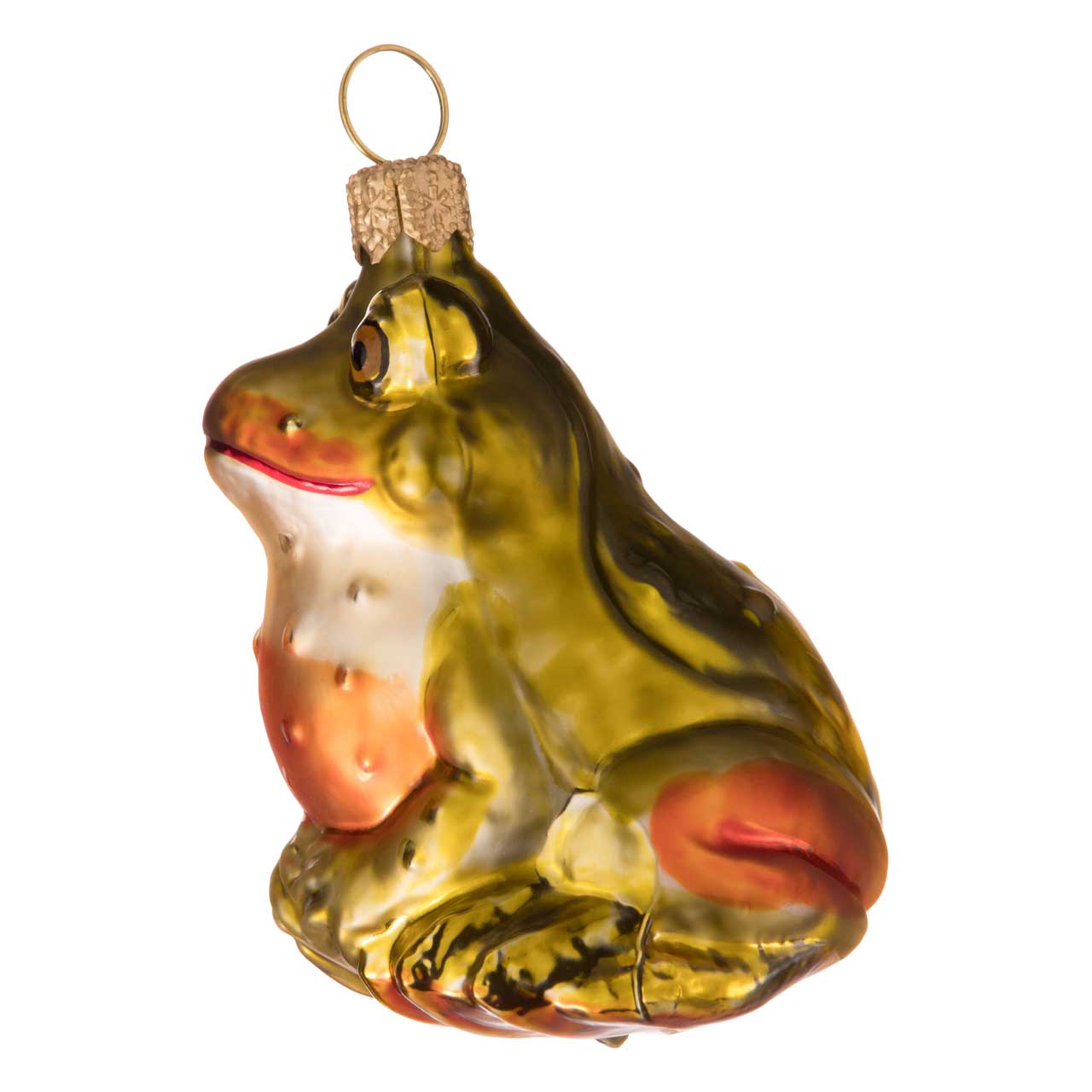 Aufrecht und majestätisch blickt sie dabei nach vorn, das breite Maul mit den roten Lippen vergnügt geschlossen, die Vorderpfötchen in der Front verschränkt. Grasgrün schimmert ihre Froschhaut überwiegend. Lediglich an der Schnauze, den Innenschenkeln und am Bauch schimmert sie orangen, am Kinn sogar weißlich. Und wer sich besinnt, dem fällt auch gleich ein: Stimmt, es gibt tatsächlich gleich mehrere Märchen, in denen eine Kröte mitspielt. Gewiss so eine stattliche wie diese.