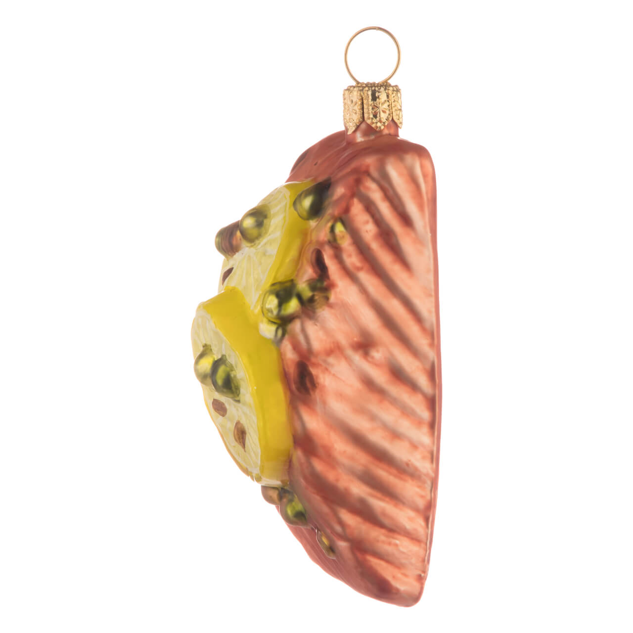 Klein, aber oho! Oder sollte man besser sagen: mhm!? Denn beim Anblick dieses feinen Leckerbissens läuft einem förmlich das Wasser im Munde zusammen. Und nicht nur das. Das Lachsfilet regt vermutlich nicht nur den Gaumen, sondern auch die Lachmuskeln an, denn als Schmuck im Weihnachtsbaum ist das Motiv mehr aus außergewöhnlich.