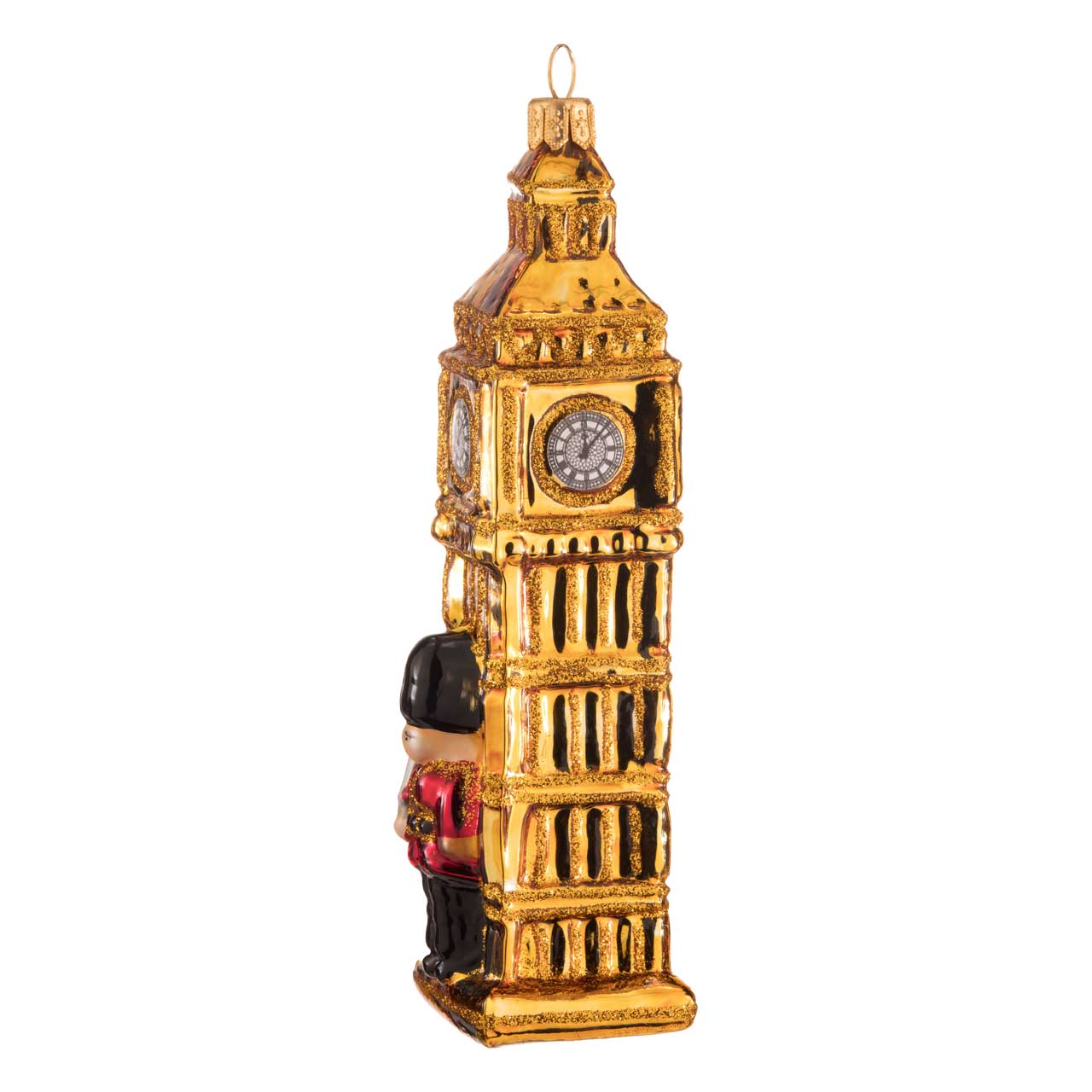 Zwei Wahrzeichen von London? Der hohe Big Ben mit seinem berühmten Glockenspiel. Und natürlich die Garde des Königs mit den hohen, schwarzen Bärenfellmützen. Zu einer einzigen, gemeinsamen Figur vereint können Sie beide nun mit diesem Glasornament an den Tannenbaum hängen und von der nächsten Reise in Englands spannende Hauptstadt träumen.