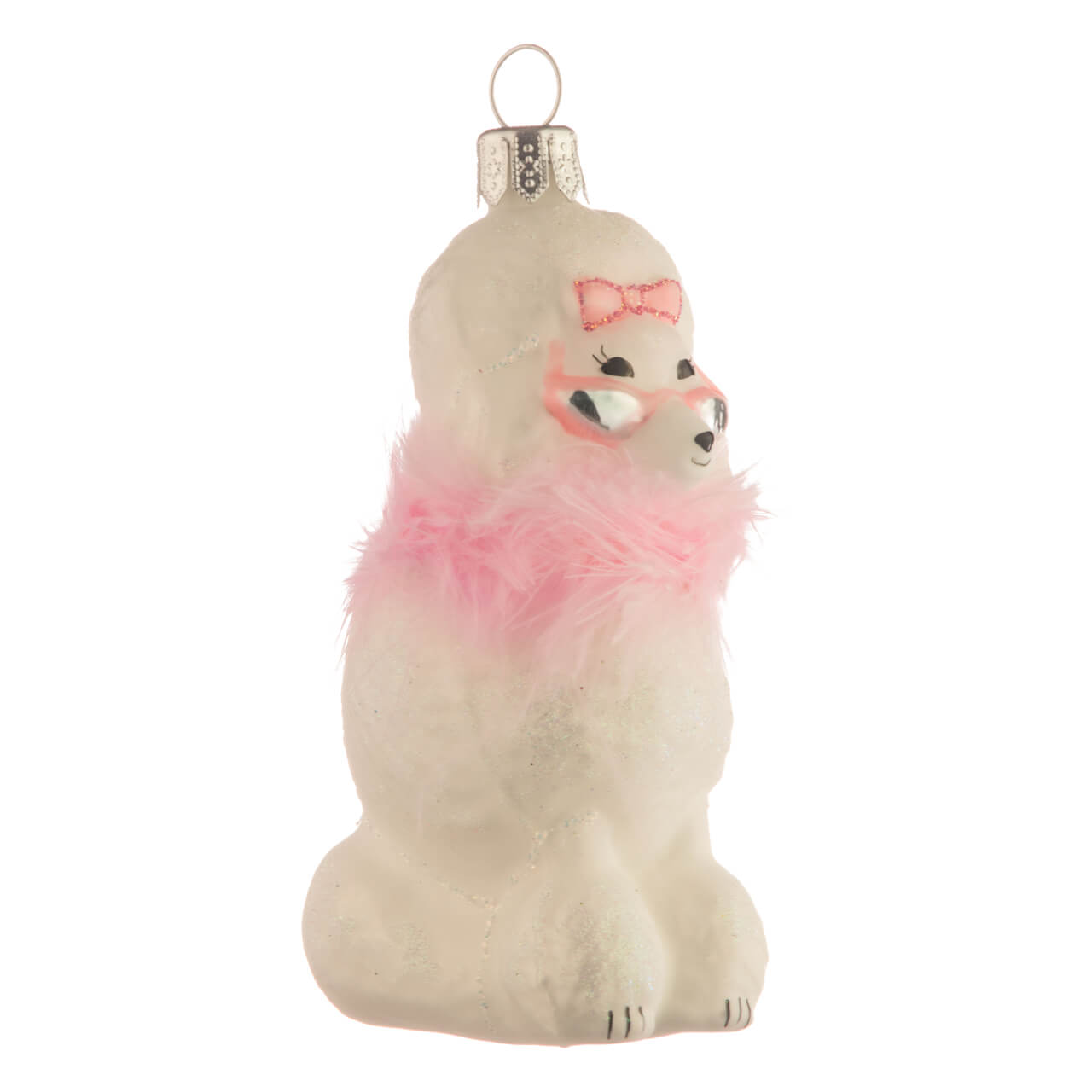 Andererseits ist völlig klar: Hier kann es sich nur um einen Pudel handeln (und zwar um ein echtes Prachtexemplar)! Denn nur der war vor allem in den 50er Jahren zum wahren Modehund avanciert, den man färbte, stylte, liebkoste, vermenschlichte - dank seines so wunderbar frisierbaren, üppigen Fells. Eine Hommage an ebenjene verrückte Zeit bringt diese Glasfigur an Ihren Weihnachtsbaum. Und zwar in gleich zwei Varianten, die nicht nur neben viel Humor auch jede Menge Glamour versprühen.