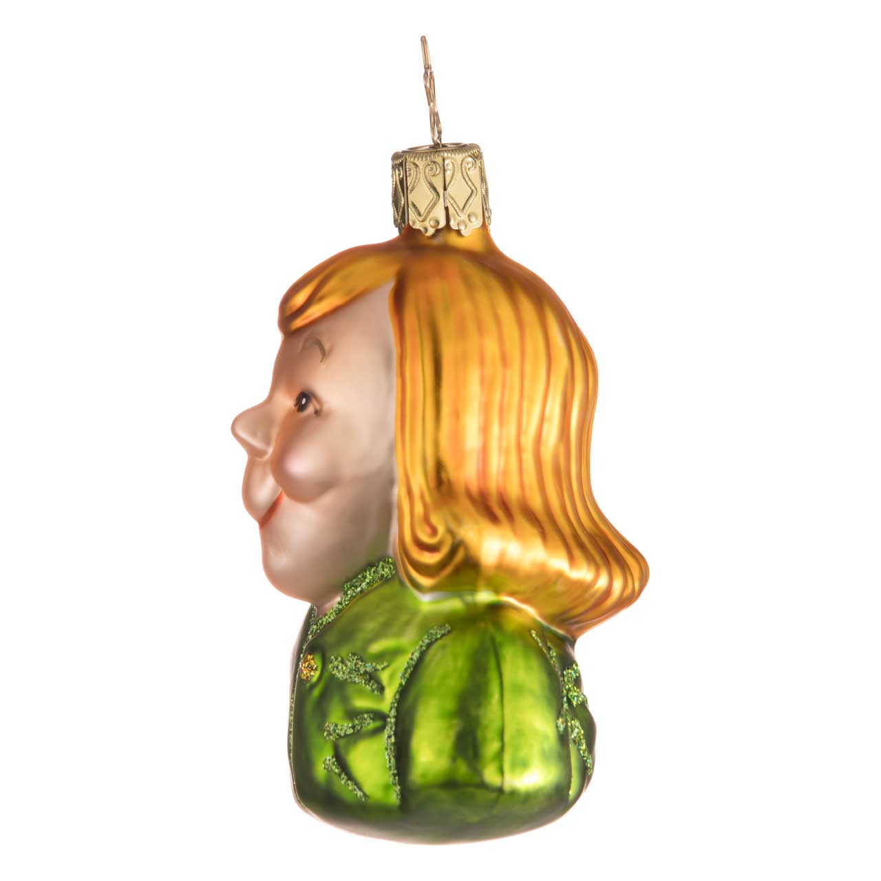 "Ach, was muss man oft von bösen Kindern hören oder lesen!" - Na, wer kennt die Zeilen nicht, mit denen Wilhelm Buschs berühmte Bubengeschichte in sieben Streichen beginnen? Einen wunderschön keck dreinblickenden Moritz gibt es hier nun als Glasfigur für den Tannenbaum. Als Büste baumelt er vom goldenen Krönchen herab.