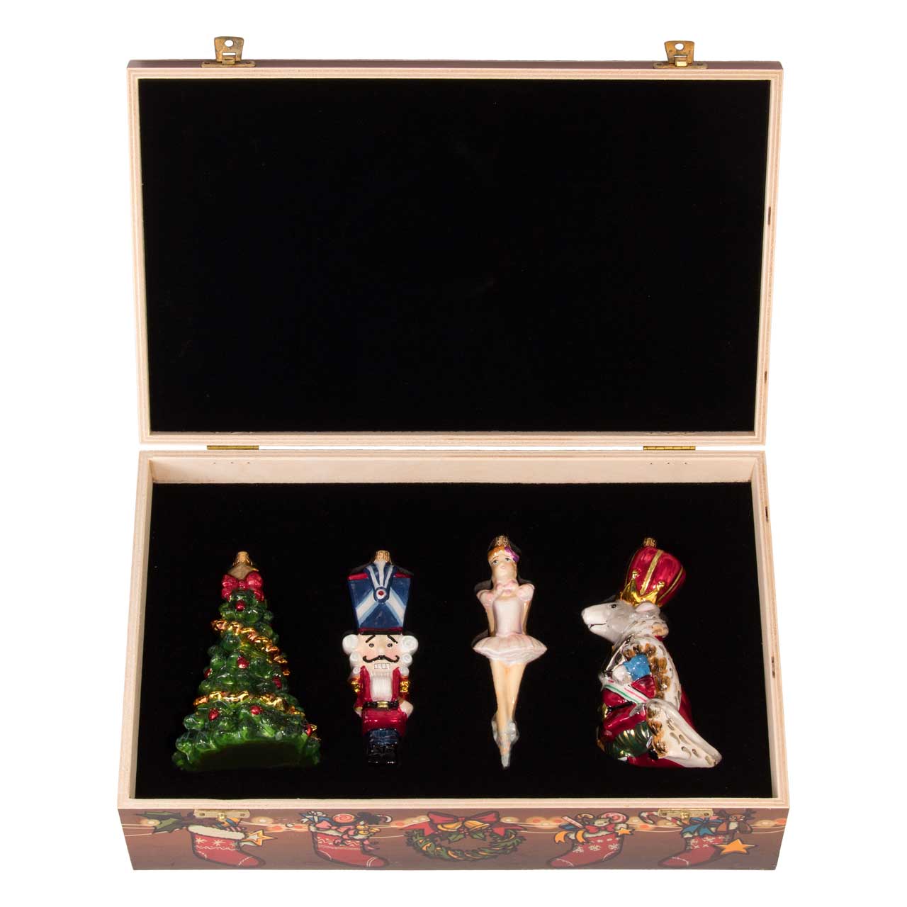 Übrigens: Nicht nur am Weihnachtsbaum - auch während des Jahres legen die Figuren einen gelungenen Auftritt hin - dank der hochwertigen und liebevoll bedruckten Holzbox, in der sie sicher verstaut und perfekt gelagert werden können.