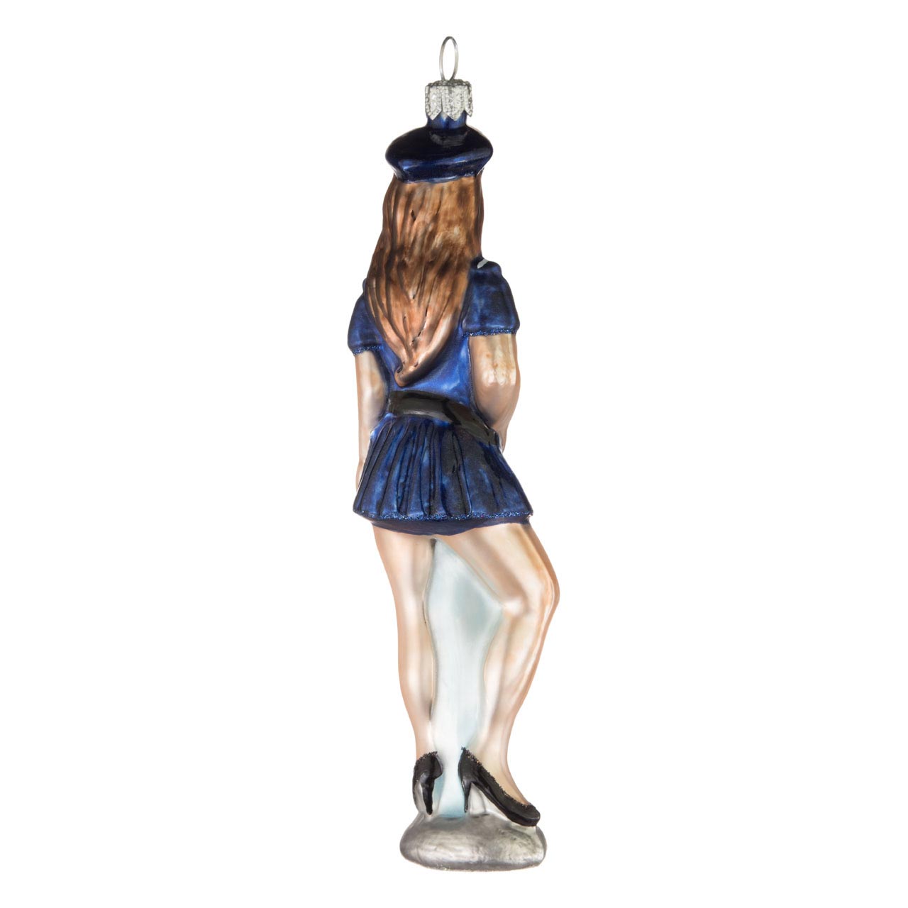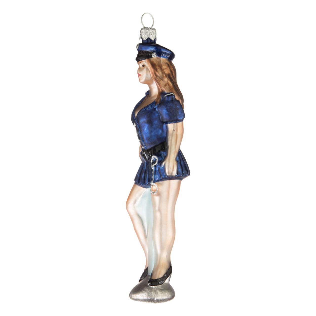 Blaue Uniform, ein Orden an der Brust, die Dienstmütze auf dem Kopf und ein paar Handschellen, die vom martialischen, schwarzen Gürtel baumeln: Theoretisch hat die Polizistin alles dabei. Praktisch scheint sie jedoch weniger für Recht und Ordnung im Einsatz zu sein, als für den ein oder anderen Männertraum ...