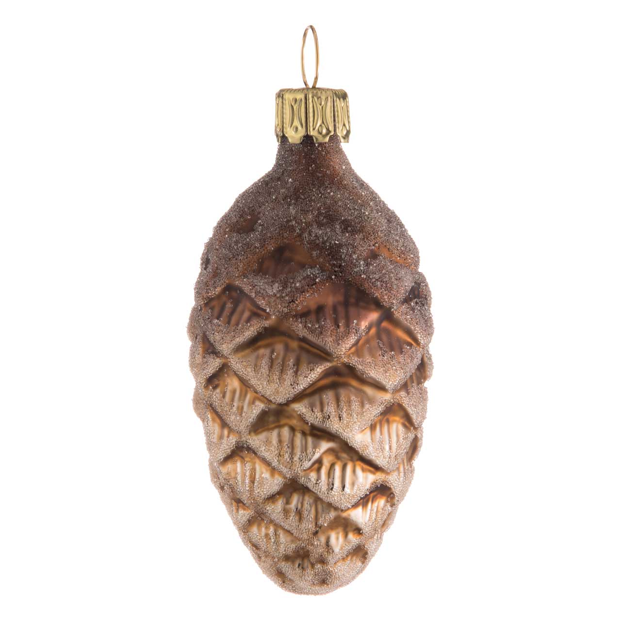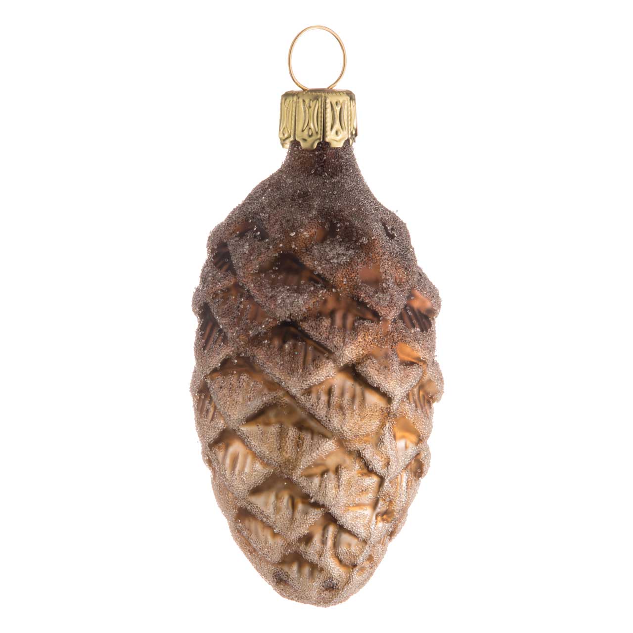 Was passt besser zu einem Nadelbaum als ein schöner Tannenzapfen? Gut, streng genommen müssten wir ihn Fichtenzapfen nennen, da er vom Krönchen herabhängt und nicht wie eine Kerze aufrecht auf den Zweig geklippt wird. Dennoch fügt sich dieser konisch geformte Zapfen nahezu perfekt als Deko in den Christbaum ein.