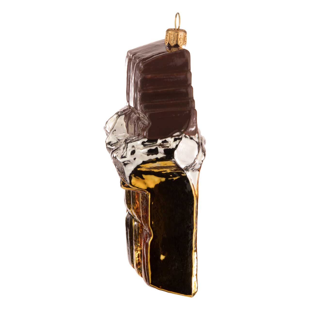 Schokolade. Der Klassiker seit es Süßwaren gibt. Wer liebt sie nicht? Tief braun, fest und dennoch weich genug für einen "knockenden" Biss? Ganz genau, das Geräusch, "knock", scheint es auch bei diesem glänzenden Beispiel für den Tannenbaum gemacht zu haben. Oben rechts fehlt nämlich ein großes, köstliches Stück. Zahnabdrücke lassen ein Schleckermaul erahnen, das sich nicht beherrschen konnte.