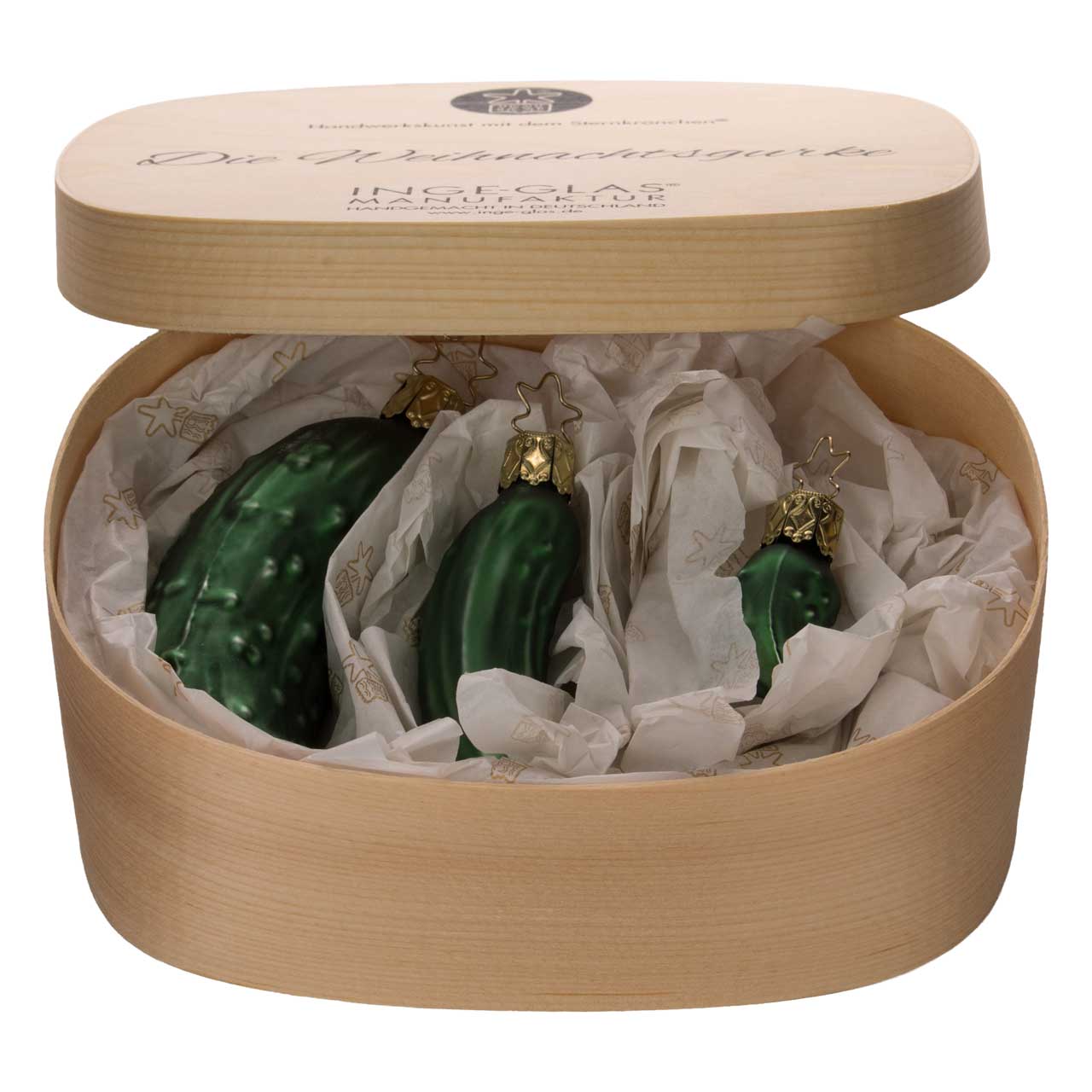 Spaß macht es auf alle Fälle immer wieder, das kleine gläserne Gemüse in der Optik einer Gewürzgurke im Tannengrün des Weihnachtsbaumes zu verstecken und dem stolzen Erstentdecker ein extra Geschenk zu verehren. Und mit diesem Dreier-Set liegen Sie immer richtig: Je nach Anspruch, Talent, Geduld, Ausdauer und Fähigkeit - kurz: für jeden - ist hier garantiert die richtige Größe mit dabei!