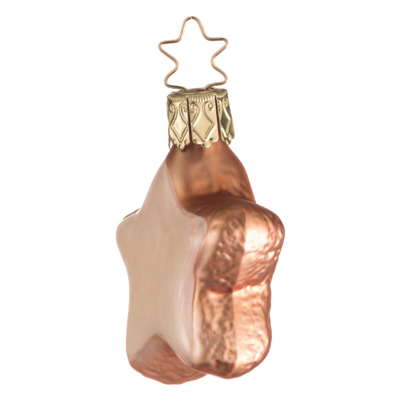 Kunstvoll mit leicht buckeliger Oberfläche zur gläsernen Figur geblasen, wurde er backfrisch-braun sowie matt schimmernd lackiert. Gerade so wie just aus dem Ofen oder aus der Keksdose stibitzt. Auch seine Vorderseite präsentiert sich lebensnah auf milchig weiße Weise - als wenn sie mit der typischen Baiser-Schicht überzogen worden wäre.